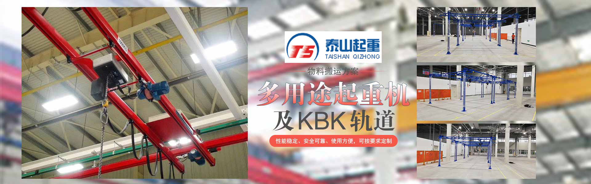 江陰市泰山起重設備有限公司座落在富庶的現代化港口城市——江陰市南閘鎮工業園區,緊靠錫澄高速,錫澄路,北依江陰港區,貫通滬寧高速的世界第四、中國第一的江陰長江大橋,穿越而過,飛架南北,高速至上海虹橋機場僅2小時,南又緊靠正在建設中的無錫國際機場,交通便捷,環境優美。  本公司專業為壁行式懸臂起重機、KBK軌道,鋼絲繩電動葫蘆、環鏈葫蘆、KBK組件,梁式起重機、電動旋臂起重機等配套起重機械配件,主要產品有:KBK軌道,梁吊掛裝置、環鏈葫蘆,KBK組件,手動式小車、行車走輪、電纜滑車等起重機配件,同時可提供起重設備的安裝、維修、為客戶提供全方位的技術咨詢等各項服務。  公司的管理將“以人為本”作為宗···...